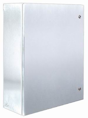 材料: SUS304 (其它材料型号可选) 表面处理: 拉丝,安装板则为镀锌 防护等级: IP56(按GB4205-1993) 标准配置: 门板、箱体、密封条、接地套 件、安装板、门锁 钢板厚度: 箱体: 1.5mm(可选2.0mm) 门板: 2.0mm 安装板: 2.5mm |